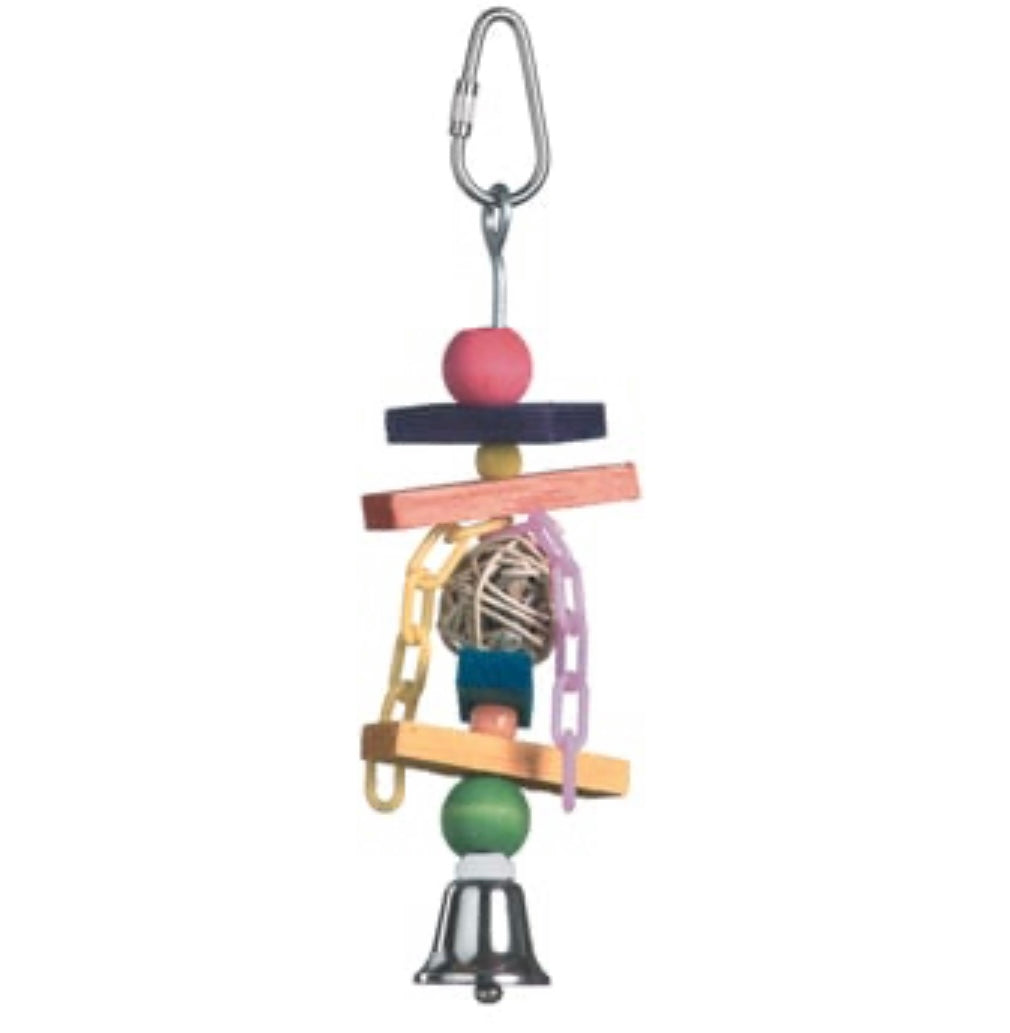 Small toy, big attitude! Thick balsa slats, plastic chain, natural vine ball and a bell are just part of the interesting textures on this best selling toy.