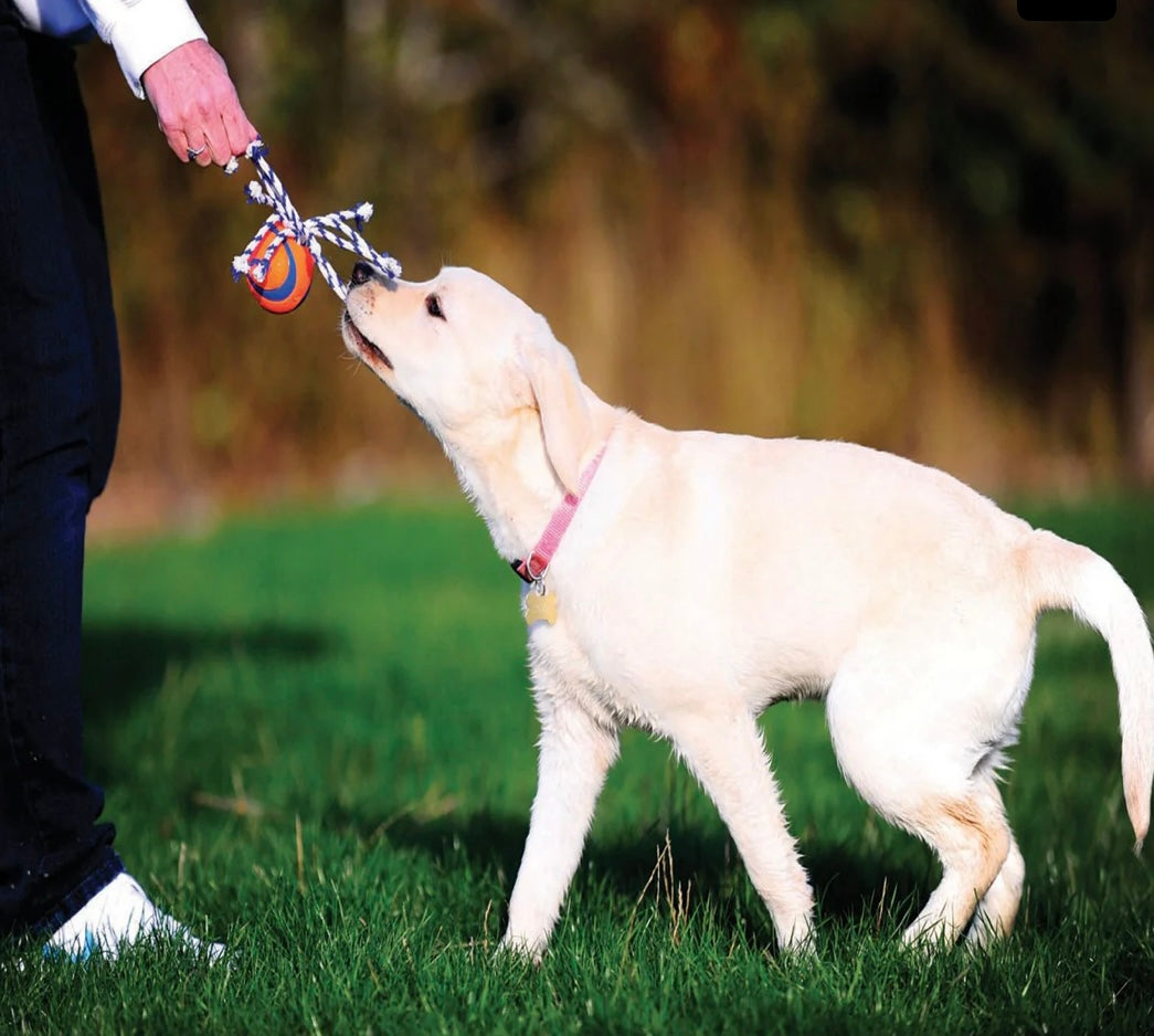 Designed for the most demanding use, Chuckit!® Ultra Toss® is no ordinary ball. Simply put, this is the best ball for games of fetch or tugging. It was developed to have high bounce, high buoyancy, high visibility, and high durability. The Chuckit! Ultra Toss promises to outplay the ordinary. It is made from natural rubber it is easy to clean after a fun-filled game of fetch. The natural cotton rope makes for easy handling and gripping. Bright color gives increased visibility and helps to prevent the ball from getting lost. Compatible with Chuckit! Launchers.