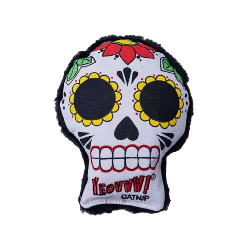 Based on the design of calaveras, the decorative skulls emblematic of Día de los Muertos, La CAT-rina is an elegant and colorful feast for kitty’s senses. The face is covered with our durable cotton twill, perfect for withstanding celebratory