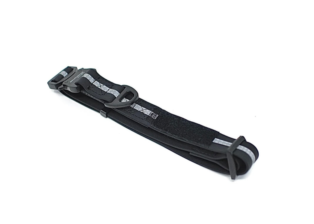 This Adjustable Guide/Service Dog Collar is the perfect accessory for your working dog. Made with 1" wide waterproof and ultra-soft and supple polymer-coated webbing, this collar is strong and comfortable for your furry friend. The collar features 3M reflective material sewn onto the webbing, making it perfect for all types of weather and providing increased visibility at night. The quick-release buckle make for easy-on-easy-off and the aluminum alloy V-ring provides superior strength, will not rust and is ultra-light weight. The reflective patch is easy to attach and remove with Velcro. This collar is fully adjustable, allowing you to customize the fit to your dog's neck size. With its high-quality materials and attention to detail, this collar is the perfect choice for your guide or service dog.